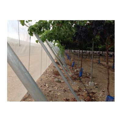 Rufepa manufactures and install tens of hectares of this kind of nethouse variety. Purpose of this greenhosue is double: Support the table grape branches and the heavy grape clusters with the pergola structure. Protect the table grape from hail storms, birds, excess of wind. Structure is also suitable to install light plastic cover to advance the yield of the table grape for a few weeks and produce early grapes for the market. Our product reference is: MCCV