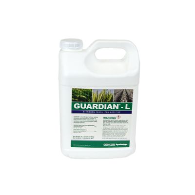 Guardian-L Nitrogen Fertilizer Additive is a complete solution to hold nitrogen in the root longer, allowing for increased plant uptake and reduced nitrogen rates of up to 20%. Best used with liquid nitrogen solutions. Guardian-L is an efficient and effective means to boost your yield potential when your management practices call for a liquid. Use 1.5 to 3 quarts per acre for band; 3 to 5 quarts per acre for broadcast applications. Use with fluid fertilizers such as suspensions, urea solutions, urea ammonium nitrates (UAN), and liquid manures. It is a good practice to use a source of sulfur with your nitrogen fertilizer and Guardian solutions.