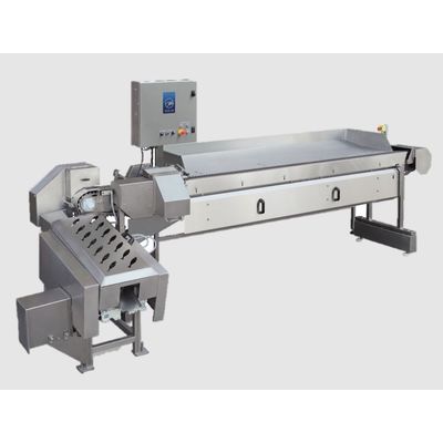 This machine is a combination of the nobbing machine SEAC FPM-200 and a filleting unit SEAC FPM-350. The SEAC FPM-400 has the best features of both machines — the efficiency of its work and the ease in maintenance. It is designed with modern materials and meets all European quality and security norms and regulations. SEAC FPM-400 can process a number fish species with similar body shape, such as herring, smelt, sardine, sardinella, etc. When the filleting unit is switched off, the machine works in the mode of HG+T production.When the filleting unit is switched on, the machine produce butterfly fillet or, if the fish is big enough, single fillet. Capacity of the machine is 150 – 320 fish per minute depending upon the tray’s size and operator’s skill. 2019 SEAC AB did the ”World Record”in this machine by filleting and belly-cleaning spats down to 5/6 gram in full weight!!
