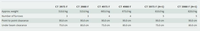 The Överum CT-series consists of models from 2 – 5 furrows with fully automatic hydraulic stonerelease system (H), or fixed beam version with shear bolts (F). Överum CT is designed with focus on strength and clearance, for long life and trouble-free operation. Long interbody clearance gives free flow for crop residues and enough room for modern effective skimmers. The frame design is simple and strong. The furrow width adjustment in three steps is solid and maintenance free, 14, 16 or 18 inch (35, 40 or 45 cm).