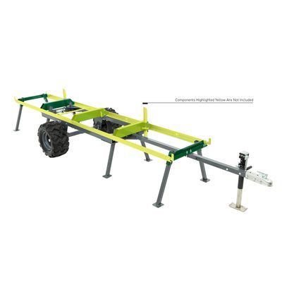 The Bushlander™ off-road trailer package adds mobility to your milling operation. Designed for the uncharted woodland and rough terrain, the Bushlander trailer lets you conveniently bring your HM122 sawmill directly to the logs. Connect to the towing vehicle using the included 2” (50mm) ball hitch. The raised track provides a more comfortable and ergonomic working height. Easily roll into storage when not in use or for maintenance. The Bushlander standard features 8 leveling legs that can be deployed and adjusted for uneven terrain and rugged 6 ply off-road tires that can be removed to clear the operator’s walking path when milling.