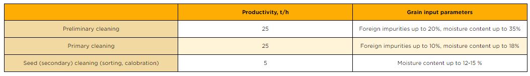 - The technological scheme provides ample opportunities for grain processing (various degrees of cleaning, calibration);