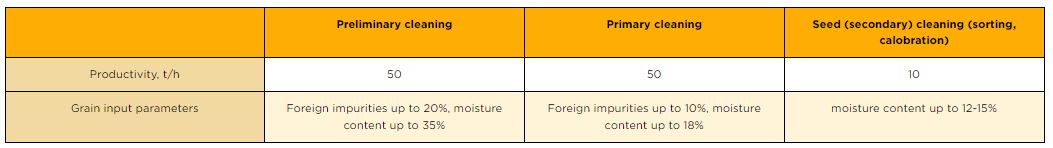 - The technological scheme provides ample opportunities for grain processing (various degrees of cleaning, calibration);