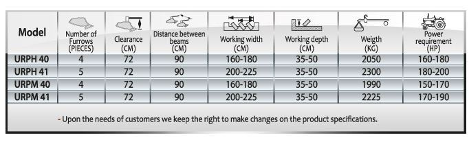 Specially designe and material for stony and hardest conditions. On-land plowing with adjustable two position working width for reducing plough pan and less fuel consumption.