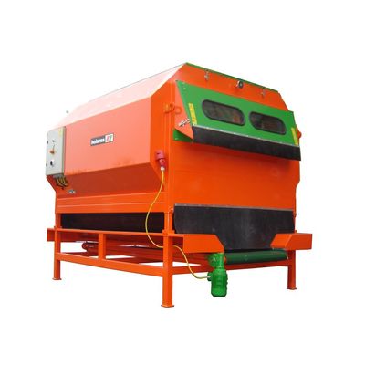 The number of directed vibrations transmitted by specially designed vibrator-motors on the vibration-sieves is such that the onions move in a floating motion over the vibrationnsieves. The haulm (tops) is drawn through the openings into the sieves by a heavy airstream, downward, and then cut by the blades.