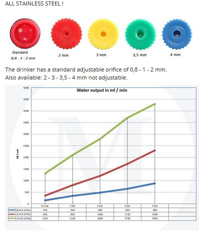 Optiflo-drinkers with the push-button mechanism offer the optimal water flow and in-take.The push-button valve substantially reduces water wastage and spillage. To activate the valve, the animals must take the drinker completely into their mouth, also reducing water wastage through playing.