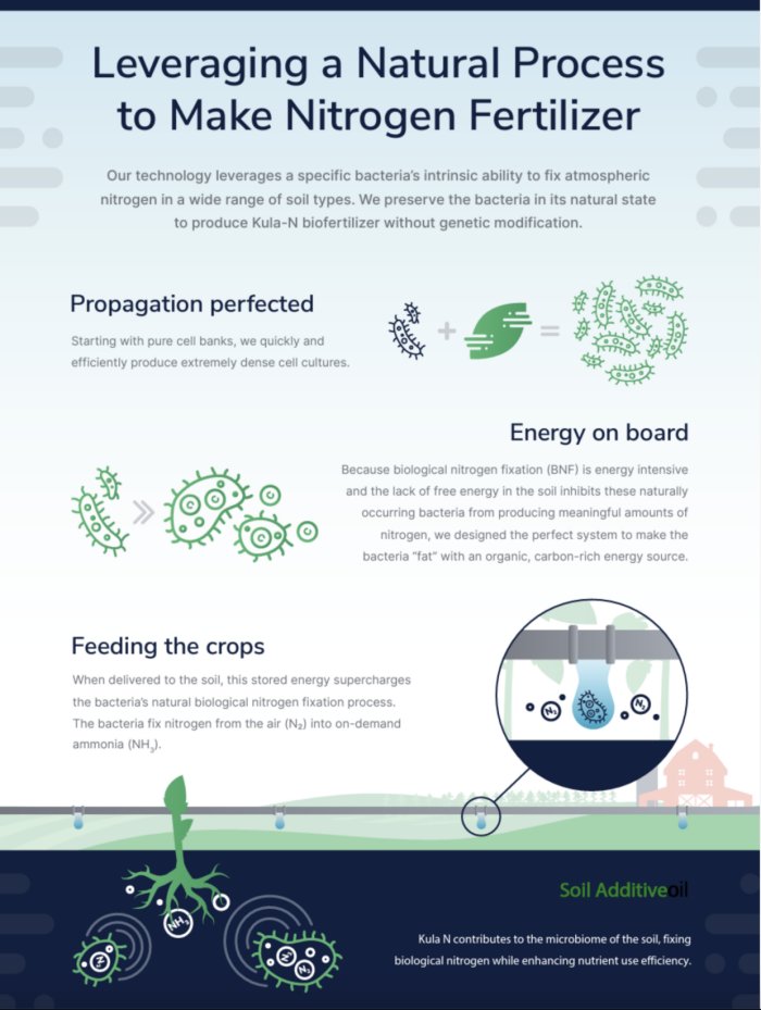 Kula-N is a next-generation, non-GMO biofertilizer designed to revolutionize the way nitrogen fertilizers are used in agriculture. This high-performance and cost-effective alternative to traditional nitrogen fertilizers is fast-acting, which means it delivers immediate results just like conventional options. Sustainable and environmentally friendly, Kula-N contains no pathogens and can be easily applied using standard irrigation systems. It is engineered to retain all the benefits of traditional nitrogen while minimizing environmental harm and soil degradation. With growing consumer demand for sustainable food options and increasing regulatory pressures, Kula-N provides a low run-off solution that helps farmers adapt to new sustainability standards without sacrificing yield or revenue.Most popular related searches