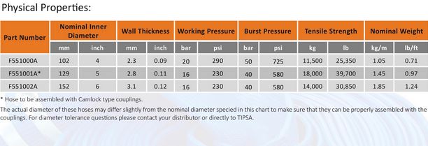 Blue cover is the standard. Designed and recommended for water transfer and as a main feeding line in agriculture. Ideal for general pumping duties in irrigation, mining, construction, sewa- ge, draining systems and water bypass operations.