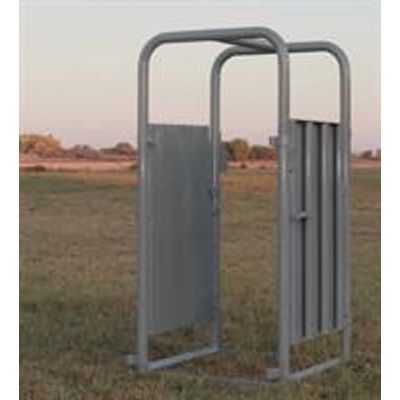This palpation cage is a 2’ extension to the chute, allowing for a safer work zone for the operator. It is designed with 4’ sheeted doors on both sides which makes it convenient for pregnancy testing, castrating, artificial insemination, and also provides less stress for the animal. The door on this palpation cage swings inward shutting it off from the working Alley. Right or Left Hand Cowboy latch optional. Weight: 220 lbs | Dimensions: 38”W x 78”H x 37-1/2”D