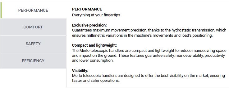 - The exclusive new generation Merlo Dynamic Load Control (CDC) system automatically detects the type of attachment used, the machine’s geometric configuration, the boom extension, angle and the handled load.