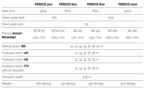 Perkoz - Model 400, 600, 800 and 1000 -Field Sprayers
