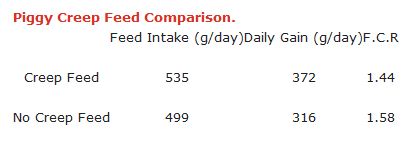 A very palatable feed for use as a creep feed in the farrowing house. Also feed as gruel or top-dressing at weaning to encourage feed intake. Feeding Piggy Creep Meal from 7 to 10 days of age, has consistently been proven to improve intakes by increasing appetites just at the right time