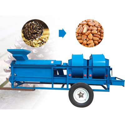 The pine nut threshing machine (pine nut crushing peeling machine) focuses on separating the pine nuts from the pine cone. The pine cone sheller is mainly used for threshing Lebanese pine nuts. It can be driven by electric motors, diesel engines, gasoline engines, etc. Its threshing efficiency is high, the output is large, and the cost is low. The pine nut threshing machine is widely welcomed by farmers and pine nut processing plants everywhere.