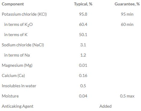 One of the most concentrated sources of potassium. Suitable for use on all soil types for all chloride tolerant crops. Excellent granulometry and spreading characteristics. Superb granule strength and no dust.