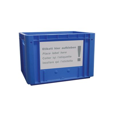 Returnable crates and containers that are used for logistic purposes require frequent labelling. The printed self-adhesive labels, applied directly on these packaging, can leave traces after each removal. Because of these residual build-up, wrong barcode scanning of old codes can generate conflicts and errors during data processing. Also, these can lead to inefficient and costly work of cleaning and scratching. Our solution to these problems is a place label holder that will accommodate the final shipping labels while necessary to accompany the product. Due to their unique coating, the adhesive labels can be simply peeled off and removed after each trip, without leaving any traces or unaesthetic marks. This adhesive label holder is a permanent label support and requires a single investment per package. If correctly applied, it will last for the lifetime of the carrier.