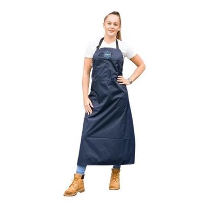 One size fits all with extra long strap with belt plain apron. Can be used in the milking parlor, feeding calves, or for cleaning. 45" long. Comes in Navy Blue or Hot Pink .