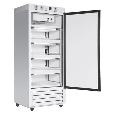 Our Model TCS33SD plant tissue culture chamber was designed for micropropagating Arabidopsis thaliana or other species from plant tissue cultures in tightly controlled temperature and lighting conditions. This plant growth chamber has four slide out shelves, with low velocity conditioned air delivered uniformly under each shelf from a louvered plenum running down the rear wall of the chamber and extending under each shelf. The louvers are adjustable so that very tight temperature uniformity can be achieved throughout the chamber at different temperatures (air density changes with temperature).