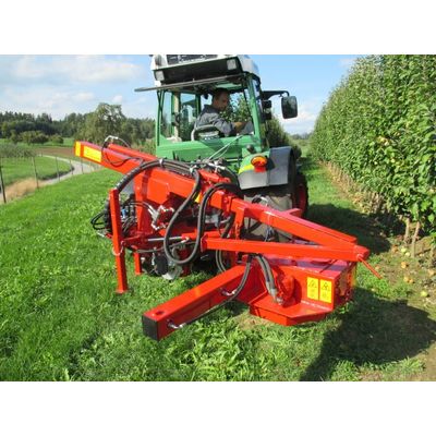 Working with the trunk shaker is extremely simple. The gripper attached to the three-point linkage of a tractor encloses the trunk of the tree to be shaken. The pressure on the rubber jaws attached to the gripper is infinitely variable. A hydraulically driven unbalanced mass shakes the entire tree. Cherries, plums, yellow plums, apples, pears, olives, or nuts can thus be harvested particularly effectively and quickly.