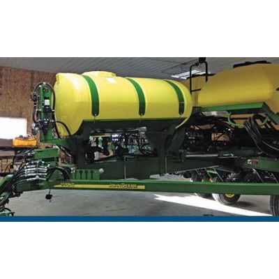 Color matched to planter on John Deere, Case IH and Kinze. Wing tanks available for select planters. Powder coat finish.