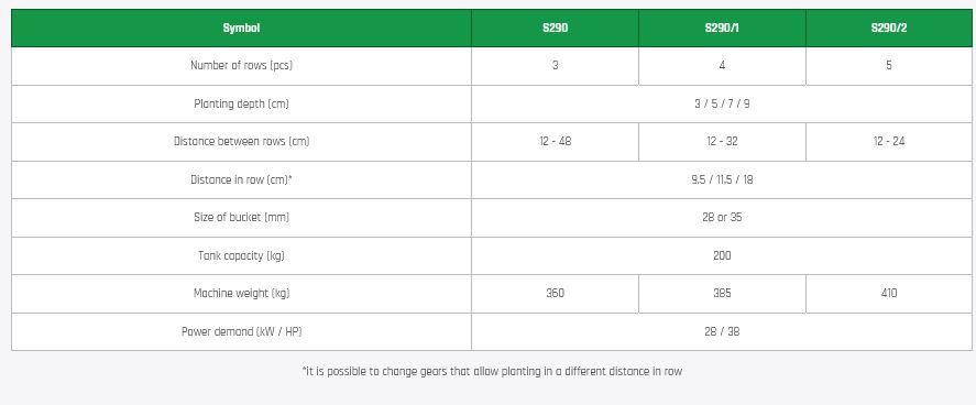 Another important parameter is the distance between rows. The 3-row planter allows for seeding from 12 cm to 48 cm in rows, 4-row: from 12 cm to 32 cm, 5-row: from 12 cm to 24 cm.