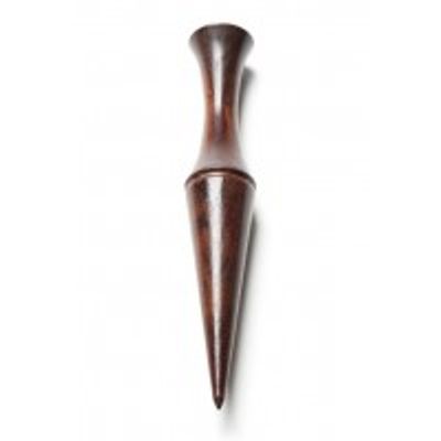 This ergonomic dibble is useful for making seed holes of various depths and sizes as well as drawing out nice straight rows. This traditional wooden planting dibble is hand-turned from domestic American Black Walnut, making it durable for many trips into the soil. The ergonomic design aids in planting of garlic cloves, making seed holes, or creating rows. This tool is popular with market growers, nursery workers, and others who work with flats and need to make repeated divots for seeds and transplants. Dimensions are approx. 13″ long and 2.5″ diameter.