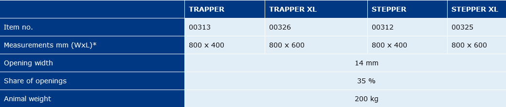 The STEPPER panel was developed especially for sheep and goats. Its proven surface provides the very best traction and stability. High supporting beam savings due to 800 mm width. STEPPER convinces by high stability and durability.