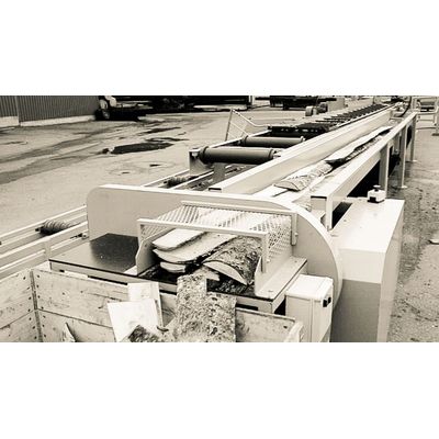 Crosscut saw for slabs processes the waste wood and slabs automatically into firewood. Receiving end of the circular sawmill or after the cross conveyor in sawmill line. Pneumatic blade and infeed belt movement. Length of the firewood adjustable. Automatic operation.