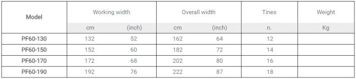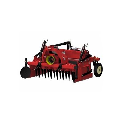 Universal 3 point linkage Cat. 2 Single speed gearbox 540 rpm PTO Compact low encumber machine Front section composed by power harrow with 200 mm centre-to-centre rotors Special Tine system bi-directional "ZEUS" ideal for a low power absorption Tine length 280 mm Rear section composed by crumbling rotor Ø360 mm with high resistance and wearing steel spikes Rear rotor mounted on parallelogram adjustable in height Independent hydraulic plant for rear roller management from 0 to 350 rpm Pair of front discs adjustable in width and height Ø 360 mm Rear adjustable hood Working depth adjustable by crank handles Cardan shaft with shear bolt torque limiter SB type (1”3/8 Z=6 tractor side yoke)