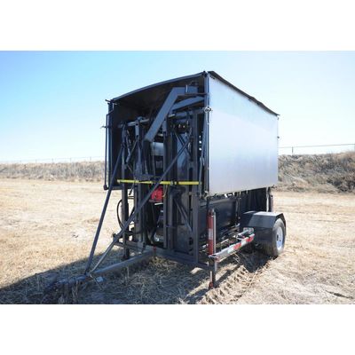 The Portable Hydraulic Chute with Building is designed to facilitate efficient livestock handling. This robust unit integrates a hydraulic chute within a sturdy building structure, ensuring ease of operation and animal safety during processing. The hydraulic mechanism enhances the control and precision of livestock handling, reducing stress on the animals and improving overall workflow. Suitable for varied agricultural needs, this product is manufactured to withstand rigorous use, making it ideal for small to large-scale farming operations. The construction emphasizes durability and functionality, accommodating different livestock sizes and requirements.