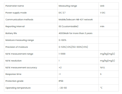 The Portable Soil fertility sensor is suitable for detecting the content of nitrogen, phosphorus, and potassium in the soil, and judging the fertility of the soil. thereby facilitating the systematic evaluation of the soil condition. Can be buried in the soil for a long time, resistant to long-term electrolysis, corrosion resistance, vacuum potting, and completely waterproof. Portable Soil fertility sensor are widely used in soil nitrogen, phosphorus and potassium detection, precision agriculture, forestry, soil research, geological prospecting, plant cultivation and other fields.