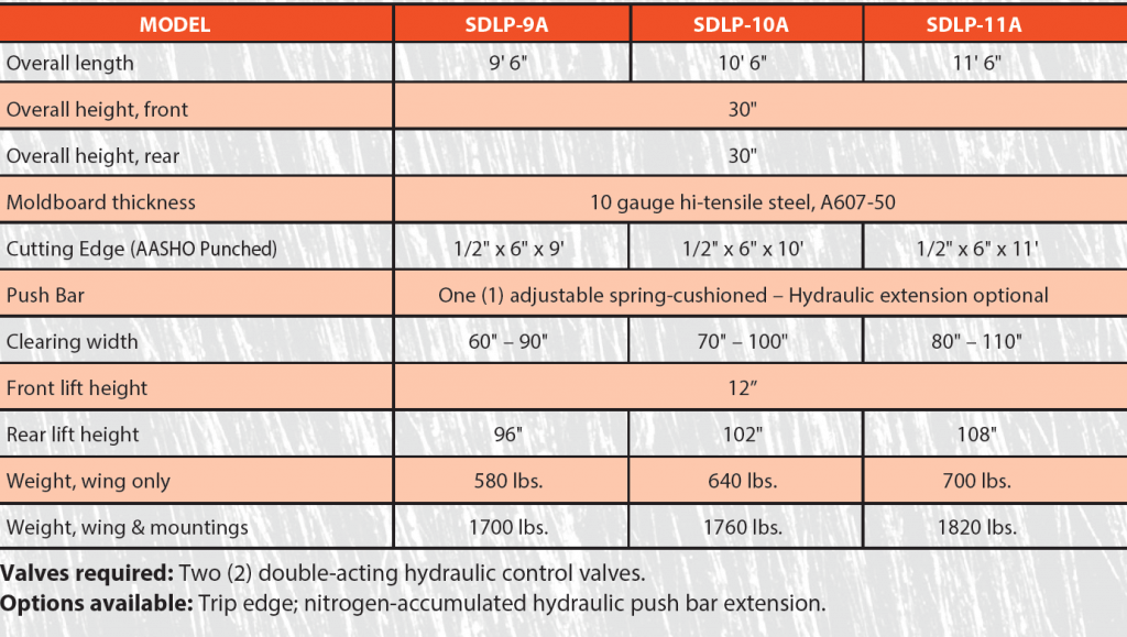 - 8, 9, 10, 11, and 12 foot cutting edge lengths available