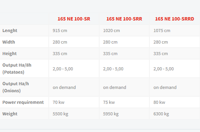 The purpose of this machine is to reduce the harvesting time waiting for the most suitable moment. Its high daily production (3-5 Ha a day) allows you to start digging when the potatoes are perfectly ripe and end when they are still good-looking.