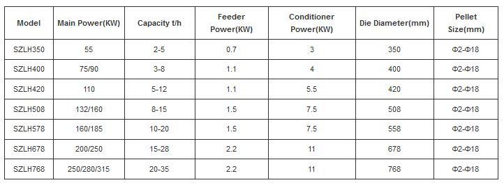 - Die diameter varies from 350mm to 768mm;the maximum capacity is up to 35t/h
