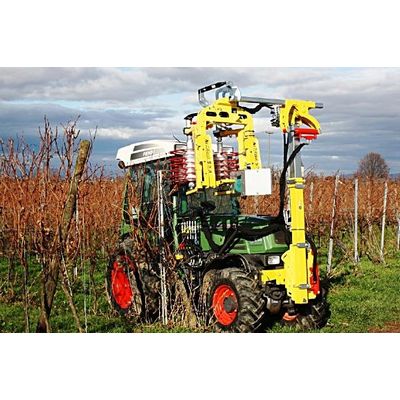 Suitable for training canes and cordons. Grapevine pruning is one of the most important, but also time-consuming, tasks. Because, in addition to removing the annual wood, the canes for the new year must also be selected and truncated. Pre-trimmers from KMS Rinklin are constructed with a modular system and can therefore be adapted to the particular training form and the terrain in the vineyard without any major effort. Each cutting head is driven by a separate oil engine. The robust knives, made of stainless cutlery steel, move in such a way that it is impossible to cut through the wires. The drive and opening hydraulics allow the pre-trimmer to be operated with the control head of the KMS vine-tying machine.