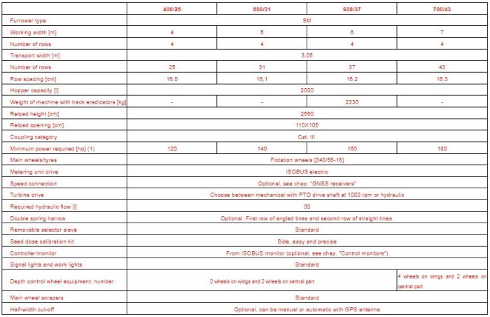 The SM-P is a direct seeder with a pressurised hopper with a capacity of 2,000 litres, available in various working widths ranging from 4 m to 7 m. It can also be used for conventional seeding and minimum tillage. Equipped with SM coulters and mounted on a 4-row seeding unit. Its chassis is made of high elastic limit steel and its distribution system is by means of a double external head.