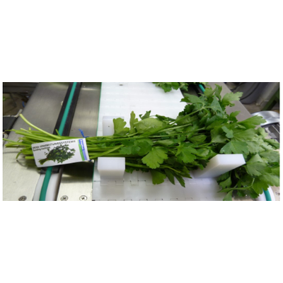 Spring onions, Parsley, Spinach, Asparagus, etc. can be bundled and labeled with a capacity up to 3000 bunches per hour. Without labeling system the capacity of the system is up to 4500 bundles per hour. The print data can be read from an internal memory or downloaded over a network.