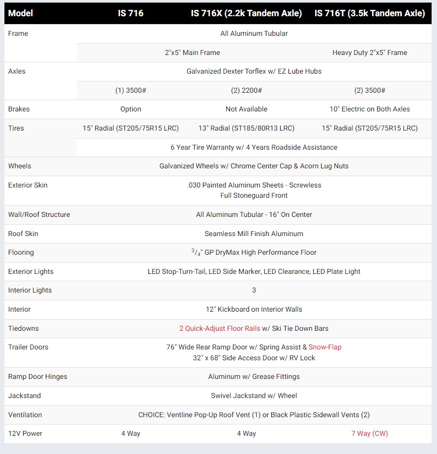 Every PROLine trailer is available in multiple different solid colors at no additional charge for any one color. We also offer Blackout Trim, Two-Tone combinations, Two-Tone w/ ATP Accent, & Aluminum Stoneguard Sides.