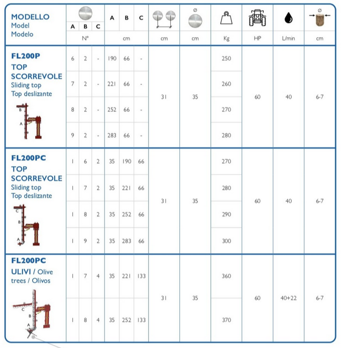 - The machine FL200P stands out for its hardiness and easy employment; the assembly and dismount are quick and easy on any kind of tractor.