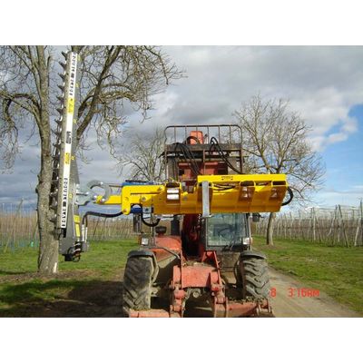 AF SPECIAL is an accessory that, thanks to its characteristics, can prune all branches, even the very high ones. It can be used in agriculture for pruning fruit trees and other plantations, where there is sufficient distance between the rows of plants. It can be installed on any telehandler, with adequate technical characteristics. The operator can handle both the operation of the machine and the path ahead while sitting comfortably in his / her seat. Being equipped with a double fork attachment, it is possible to increase the side distance, allowing the cutting bar to create a bigger space from the wheels. On this accessory it is possible to install various double blade cutting bars manufactured by B E G Company.