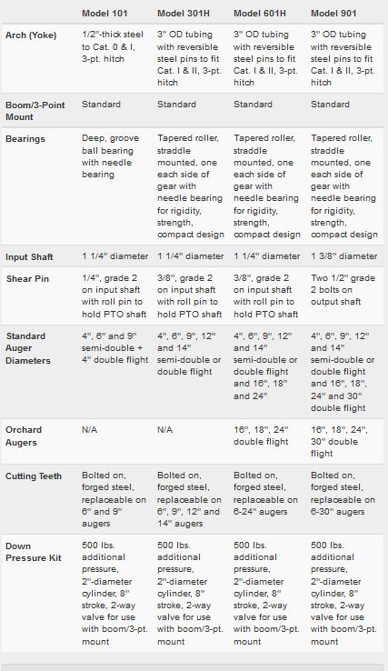 Select from four powerful PTO-driven models of Shaver post hole diggers. All four models fit Category I and II, three-point hitches.