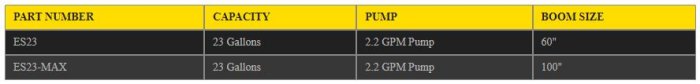 23 Gallon Tru-Kleen Full Drain Tank. 2.2 GPM Pump. Adjustable Hitch. 6″ Vented Lid. Clean Drain Valve. 20 inch Nozzle Spacing. 13″ Turf Tires. NEW 60″ or 100″ Boom Options.