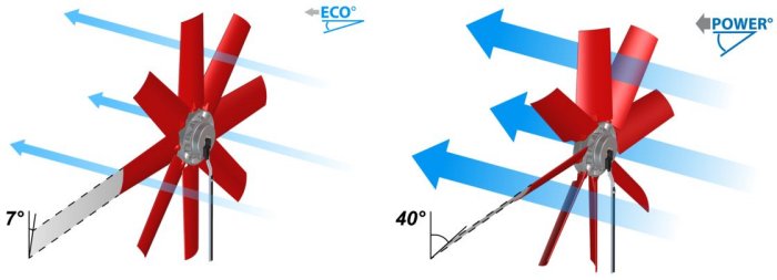 The power consumption of a fan depends on the angle of its blades. Since the Cleanfix PT/HT automatically adjusts its blades, it also regulates its power consumption, depending on cooling requirements. Up to 80% of power can be saved with a flat blade angle.