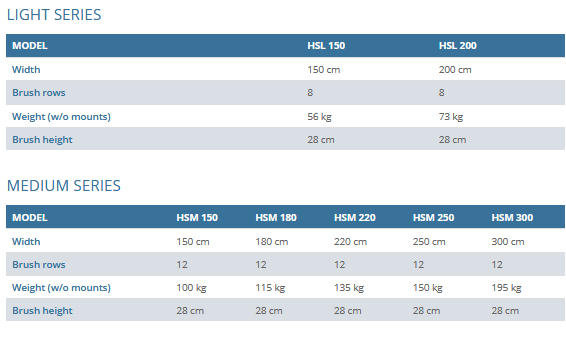 SweepAway™ can handle a variety of materials, such as leaves, sand, rocks, debris, snow and slush. Available in different widths and series; Light and medium, it fits a large range of vehicles and machines.