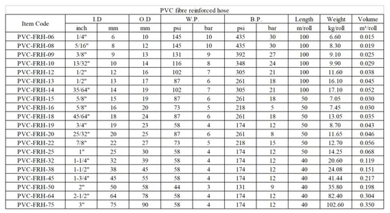 PVC fiber reinforced hoses are characterized by superior chemical and physical properties. Thanks to such properties, it is ideal for delivering water, oil, and gas. It’s perfect for construction, industrial, agricultural, fishery, food processing, and household applications.