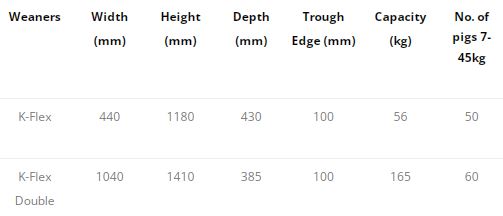 The Tubo weaner feeder has a plastic trough while the finisher feeder has a polymer concrete trough. A stainless-steel trough is available on request. The feeders can be sited in a ‘stand-alone’ position or can be integrated within pen divisions. A larger capacity double hopper feeder is available to cater for greater numbers of pigs.