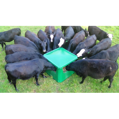 - Spill Proof: The base of the quad is wedge shaped. This trapezoid double-walled design resists turnover, even by mature bulls. A feeder as tough as your livestock.