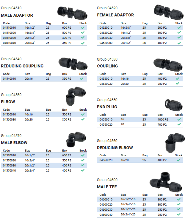 Safe and fast way of connecting drip irrigation setup using fix grip ring. Quick joint fittings ensure additional protection even on uneven ground. They are specifically used for low-pressure connections. The maximum working pressure is 6 bar. A wide range of quick joints is available. From now on, besides 16 mm, a diameter of 20 mm is also available.