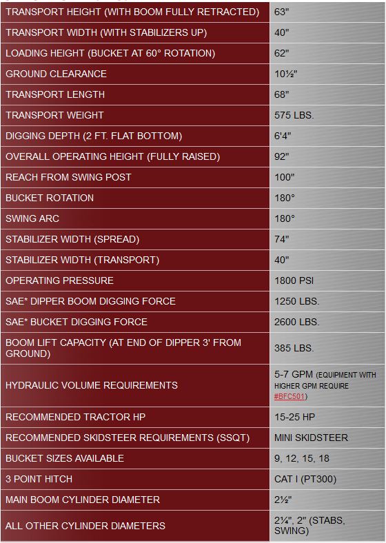 The Ranchho GX620 is designed for compact tractors starting at 18HP. With a digging depth of 6-feet and a 9-foot reach, the GX620 gets down and dirty, breaking the frostline and finishing the job quickly.