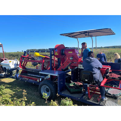The Raspberry Harvester JAREK 5R is the newest version of JAREK half-row berry harvesters. It has been adapted to collect autumn-fruiting raspberries without support elements in the middle of the bushes such as Polka, Polana, Polesie, Poemat, Polonez, Octavia, and other varieties. For summer raspberry, we recommend over the row harvester JAGODA 300 with a vertical shaking system.