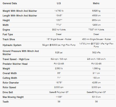 Rayco’s new C100R Forestry Mulcher is the answer if you’re looking for a purpose-built mulcher but need the versatility of rubber tracks. Our customers demanded a mulcher that was capable of crossing roadways and sensitive turf but still had the power and in-woods characteristics of a dedicated forestry machine. The C100R answers that call. It rides on a 17.7-inch wide steel-imbedded rubber track. A reliable, 99hp Kubota diesel engine supplies power, while Rayco’s exclusive Super Flow, closed loop hydrostatic system delivers mulching power not found in ordinary Compact Track Loaders. Purpose built for mulching, the C100R features a heavy duty rear door, hydraulic winch, and Rayco’s exclusive elevated cooling design, which places engine radiators in both the rear of the engine compartment and in the limbriser for maximum cooling performance in the harshest climates. The cab is certified ROPS/OPS/FOPS with escape hatches in the roof and rear window.